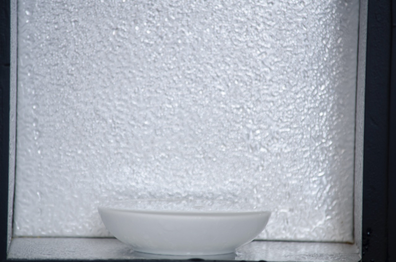 厨子に見立てた冷凍庫の中に、氷でできた阿弥陀如来坐像が安置されています。仏像を拝むために厨子を開ける時、仏像は外気の侵入によって徐々に溶けてゆきます。仏教の基本的な教義の一つに、「諸法無我」という考え方があります。諸法無我とは、全ての物事に永遠不変の実体性としての「我」はないという思想です。全ては独立自存(independent)のものではなく、依存(dependent)の関係にあるとする「縁起(dependent origination)」の思想観に基づいています。釈迦はパーリ仏典経蔵小部の第3経「自説経」において以下のように述べています。