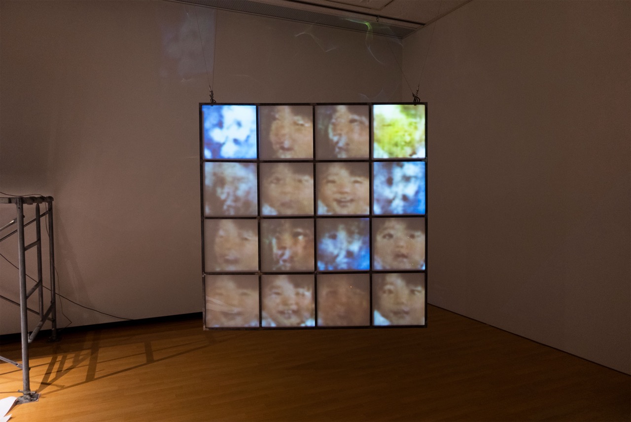 This work is an installation that uses artificial intelligence algorithms, which are also used to produce fake videos, to generate a large number of self-portraits that imitate the artist's childhood. In the "Input" section, home videos of the artist's childhood are played on a loop at very short intervals on five CRT televisions. The old video images, repeated intermittently with noise peculiar to magnetic tape, make us aware of the finite and irreversible nature of time. In the "Generation" section, the video material being played back in the "Input" section is trained by an artificial intelligence algorithm called the "adversarial generation network" to generate a self-portrait. The process of generation is projected on a screen made of steel grating, which at first is just noise, but as time goes by, it changes into something that looks like a face. In the "Output" section, the self-portrait generated after 400 training cycles in the "Generation" section is printed from a large inkjet printer.