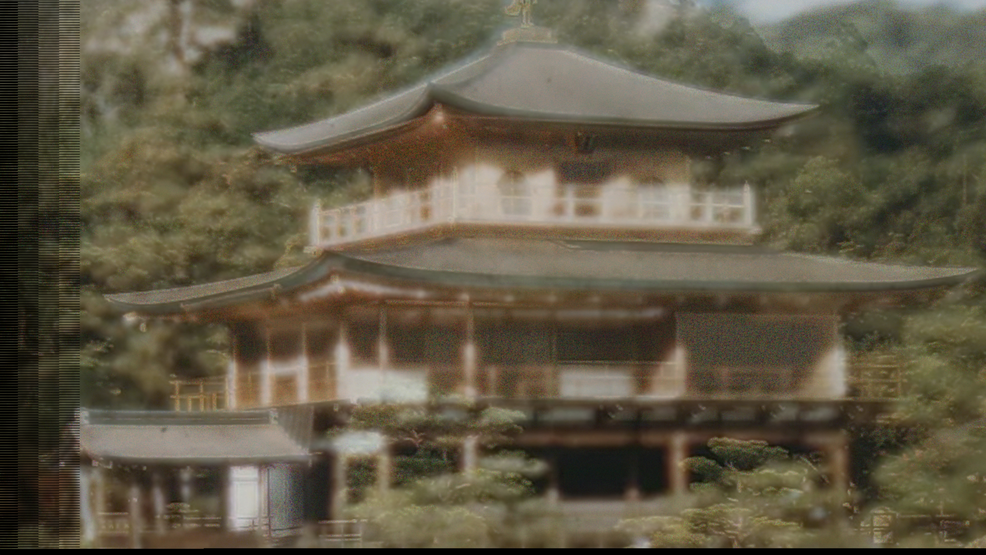Imaginary Golden Pavilion is a video installation inspired by the Golden Pavilion (Shariden) at Rokuonji Temple in Kyoto. The work uses a unique algorithm to synthesize and present a video record of the Golden Pavilion before it was destroyed by arson in 1950, and an image of the reconstructed Golden Pavilion sampled from the web. By comparing images of the Golden Pavilion from the past and present and reconstructing the pixels using the color information between them, a super-resolved fictional Golden Pavilion is generated.